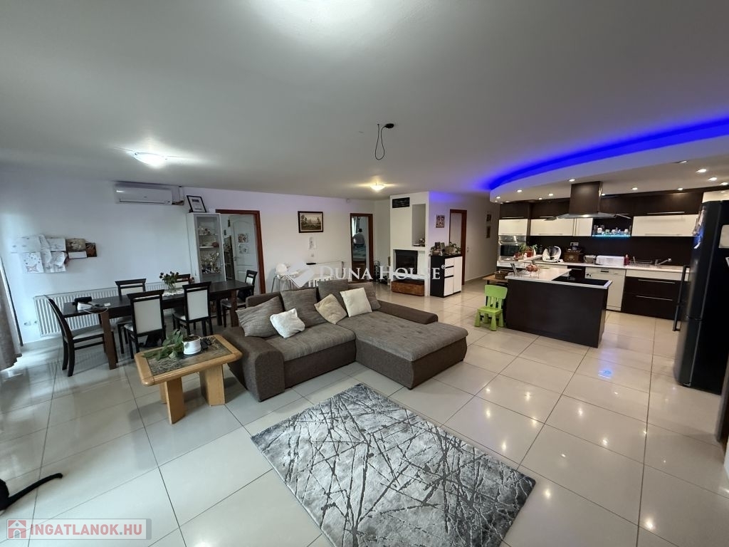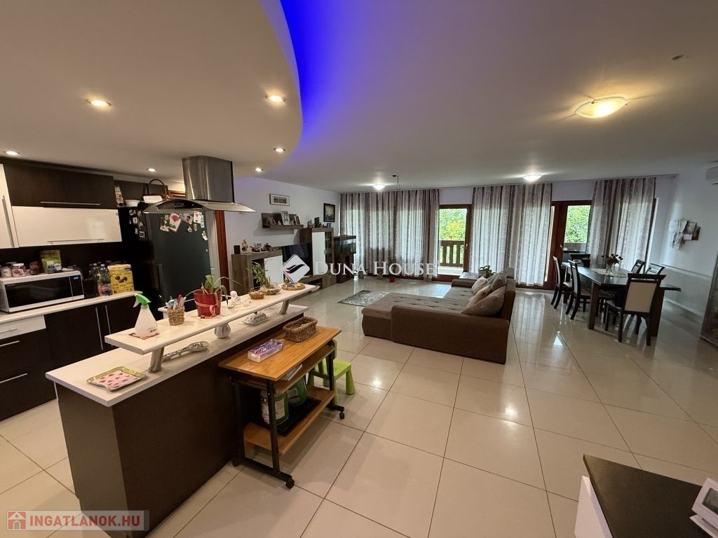 Eladásra kínálok egy 2010-ben épült, felső szint 225 nm-es, könnyűszerkezetes családi házat, mely magába foglal tágas amerikai konyhás nappalit, 6 szobát, valamint teraszt és egy erkélyt összesen 55 nm-en. Az ingatlanon belül a modern otthoni kényelem minden elemét megtalálja, a napenergia hasznosítását 21 db napelem biztosítja, míg a fűtést gázcirkó és elektromos módszer garantálja, a meleg otthonérzetről padlófűtés és radiátoros fűtés gondoskodik. Az ingatlan 198 nm-es garázzsal is rendelkezik, amely akár 10 autó számára is elegendő helyet biztosít, tárolóhelyiséggel.