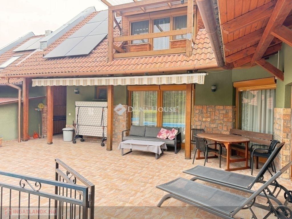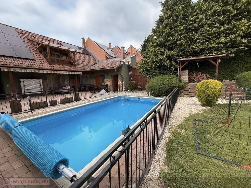 Kozármislenyben eladó egy 2004-ben épült, 153m2-es lakóterű, amerikai konyha nappali+4 szoba, dupla fürdő-wc elosztású családi ház, 834m2-es sík, PANORÁMÁS, parkosított telken.Extrák:- kandalló- klímák- elektromos redőnyök- 8 évig szaldós NAPELEM rendszer- elektromos kapuval ellátott 3 ÁLLÁSOS GARÁZS- ellenáramoltatott MEDENCE, napozó terasz- riasztó és kamera rendszer- öntözőrendszer- fúrt kút - kerti grillező- kerti tárolók- víztisztító és vízlágyító rendszer- 3 fázisAz ingatlan tehermentes és gyorsan költözhető, a berendezés alku tárgyát képzi.