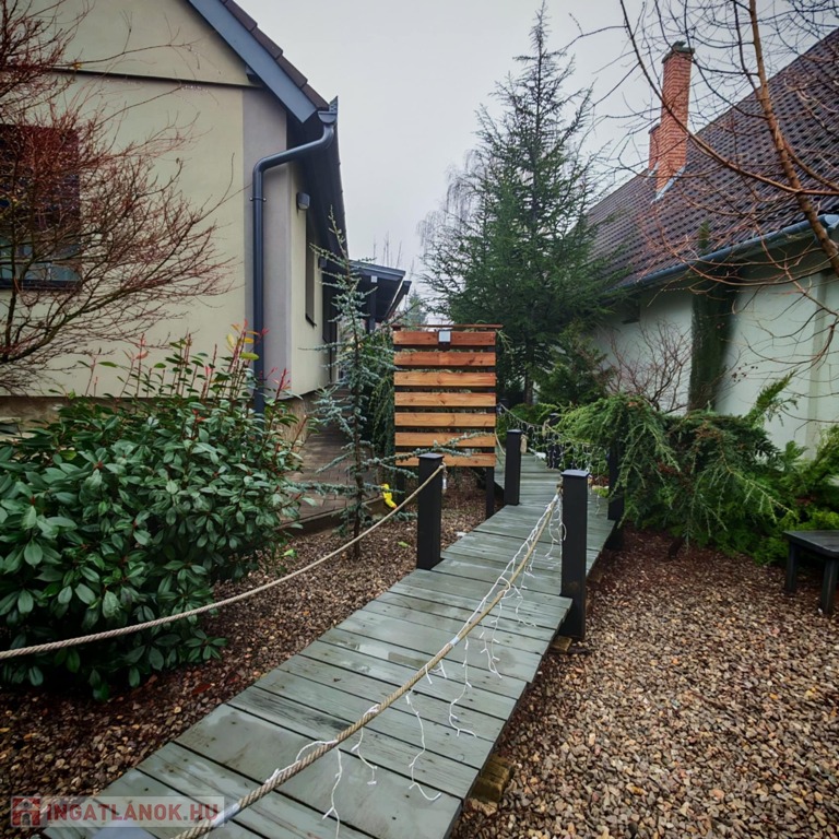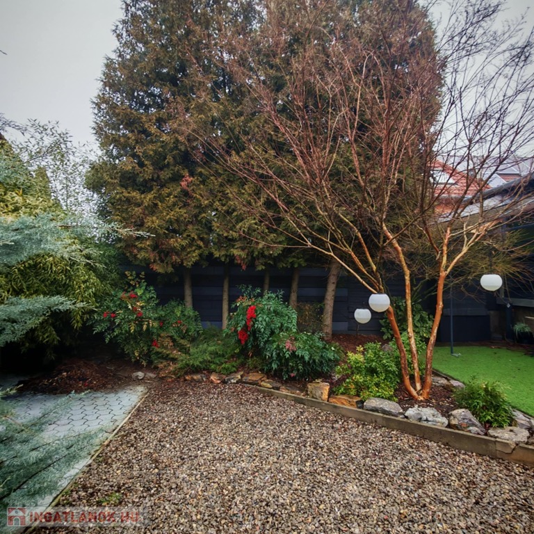Az ingatlanhoz gyönyörű, különleges és értékes növényzettel beültetett kert tartozik, amely igazi nyugalmat és intim környezetet biztosít. Kiváló műszaki állapot, alacsony fenntartási költségek, Csendes mégis központközeli elhelyezkedés, csodaszép igényes kert, rendezett környezet.