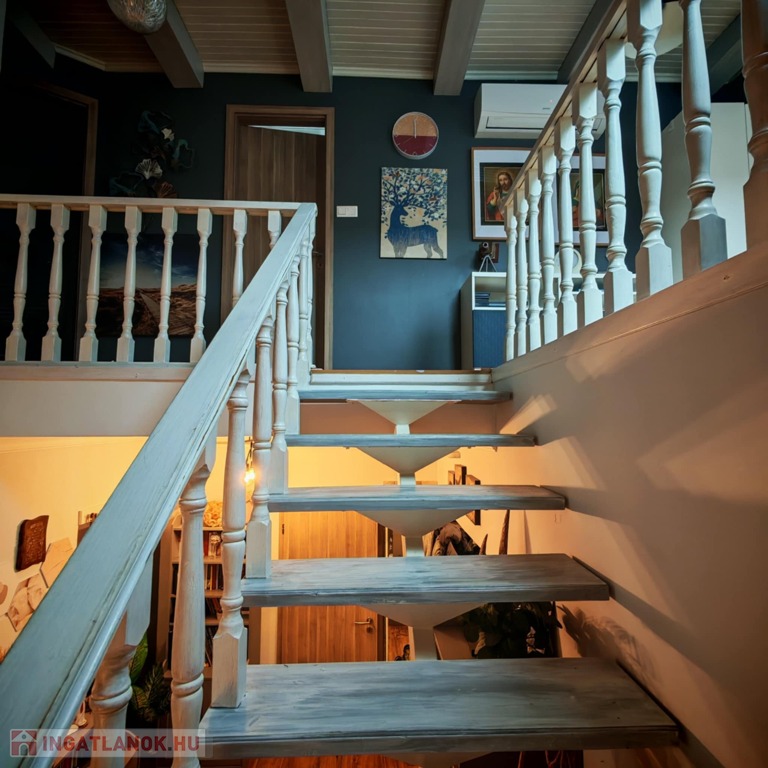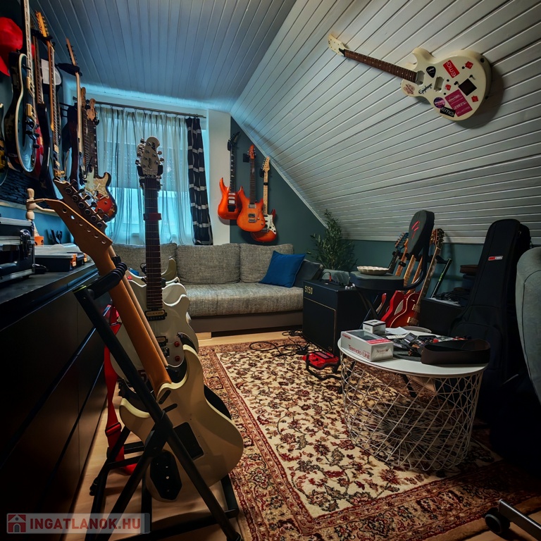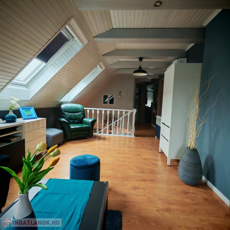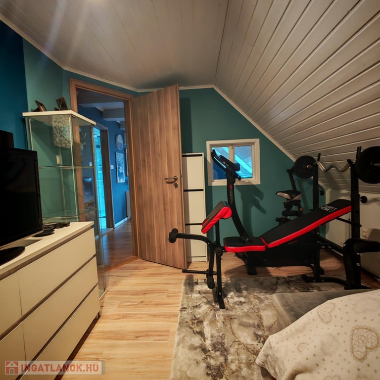 Bruttó 168 m2 lakótér 2 szinten, 5 háló szoba, 1 nappali, 2 fürdőszoba, gardrób szoba, 38-as Porotherm tégla falazat, 15 cm-es garfitos hőszigetelés, Födémen 10-15 Rockwool szigetelés, Bramac tetőcserép fedés, Cirkó padlófűtéssel, Klímaberendezés, Új nyílászárók, redőnnyel és szúnyoghálóval ellátva, valamint kényelmes terasz.