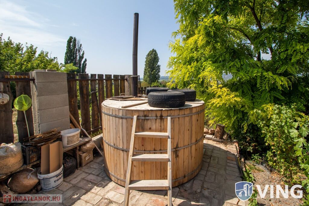 Az udvar tartogat még lehetőségeket. Van rajta fedett kocsibeálló, szauna, fűthető fürdő-dézsa, kis teraszrész kerti partiknak. Van hely még bőven a család kedvenceinek is, akik majd kedvükre szaladgálhatnak. Parkolni az udvaron és a ház előtt is lehetséges. A garázshoz a bejáró még nem készült el.