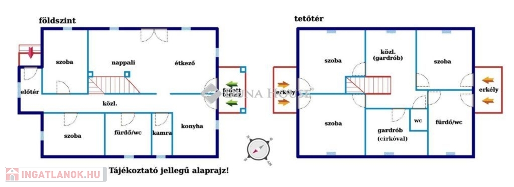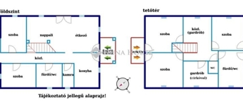 - két szinten: nappali, öt háló, két fürdő