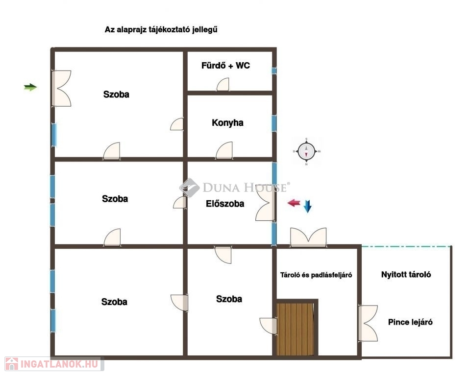 Nettó alapterület 121 nm: 4 szoba, előszoba, kamra, fürdőszoba WC-vel, több tárolóhelyiség