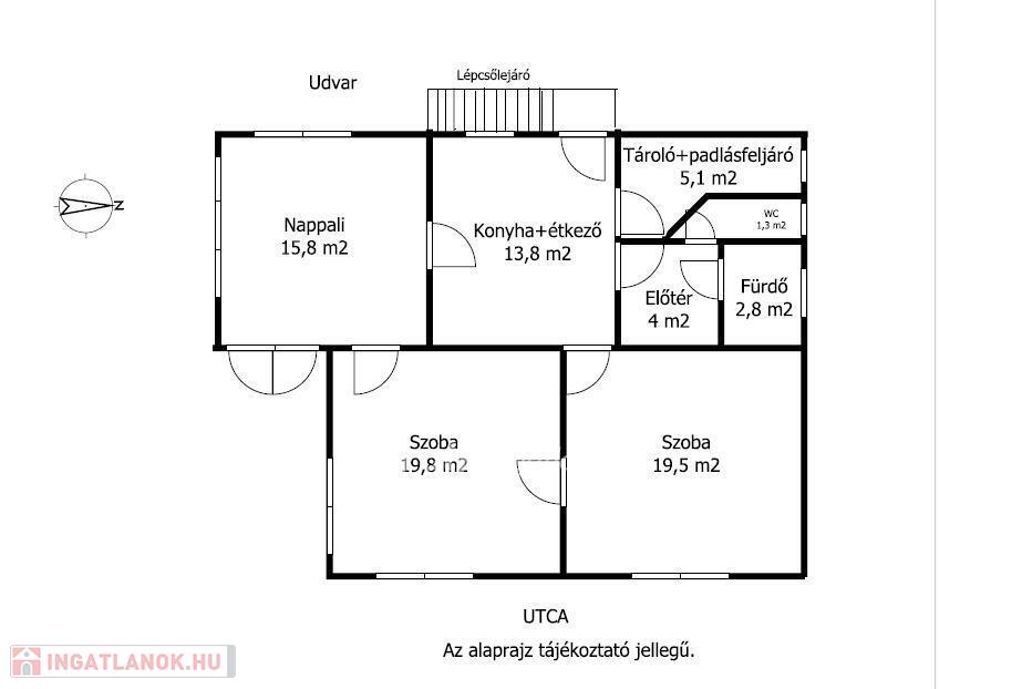 -Helyiségek: 2 szoba, nappali, étkező, konyha, külön WC és fürdőszoba, kamra, szuterénben kazánház, ami a nappali alatt helyezkedik el.