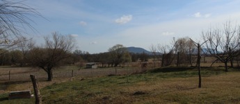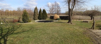 A Badacsonyra és a Szent György-hegyre néző kert könnyen kezelhető, szépen gondozott a végében patakkal.