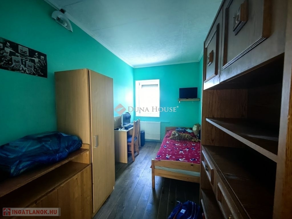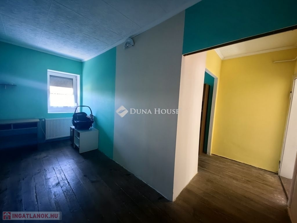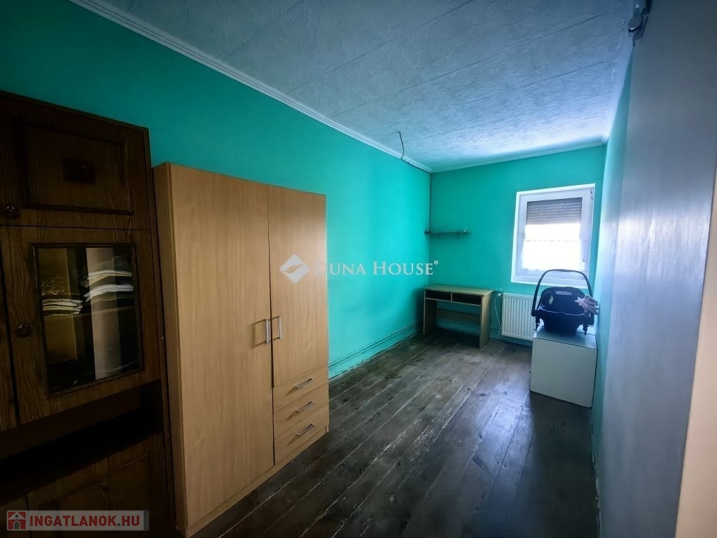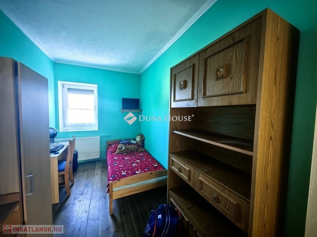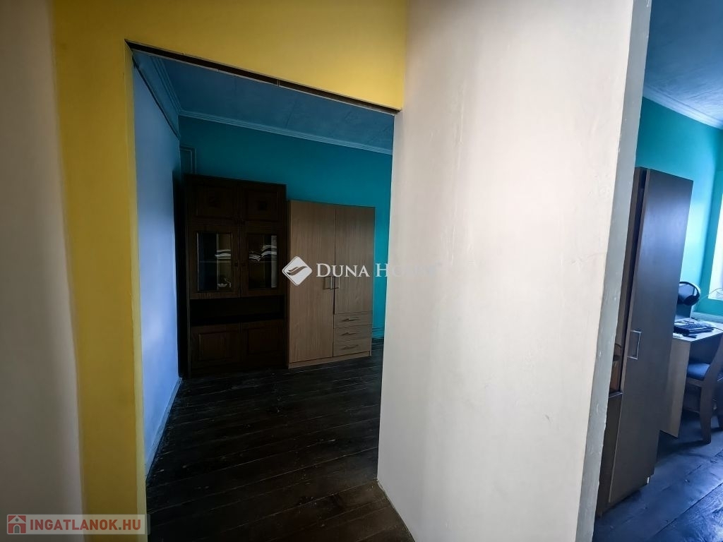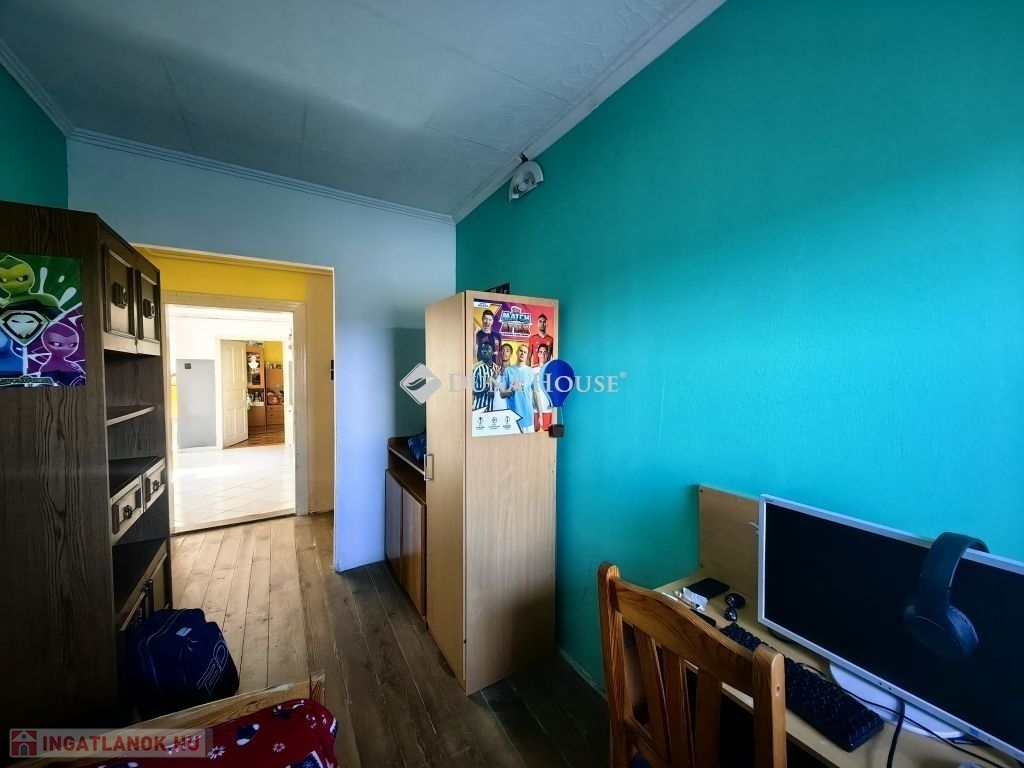 Helyiségeit tekintve: 3 szoba, fürdőszoba, Wc, közlekedő, folyosó, konyha, háztartási helyiséggel rendelkezik az ingatlan.