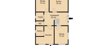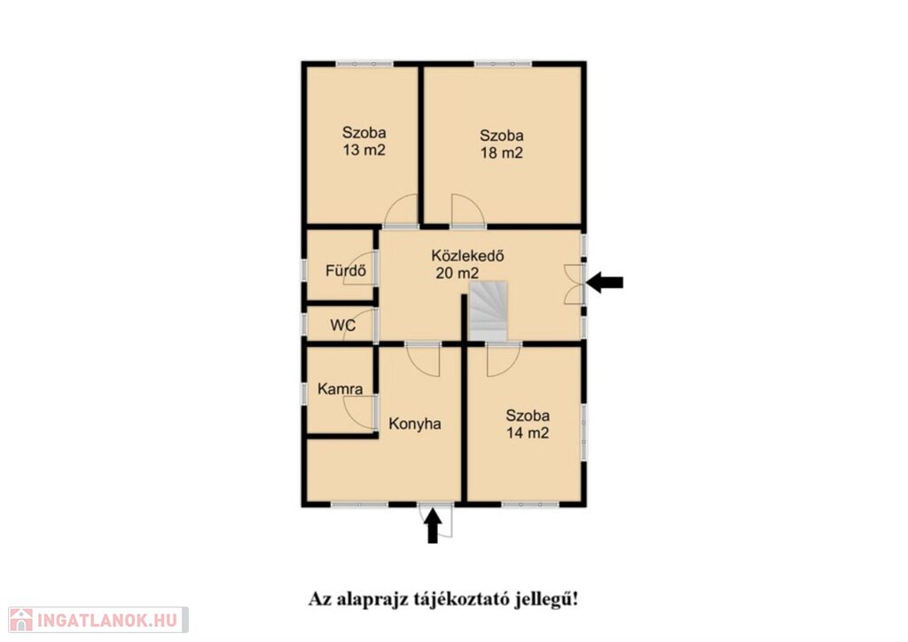 A ház: 90 m2, ezen felül gépkocsi tárolására alkalmas 20 m2-es garázzsal is rendelkezik az ingatlan, valamint további tároló helyiségekkel és állattartásra alkalmas óllal is.