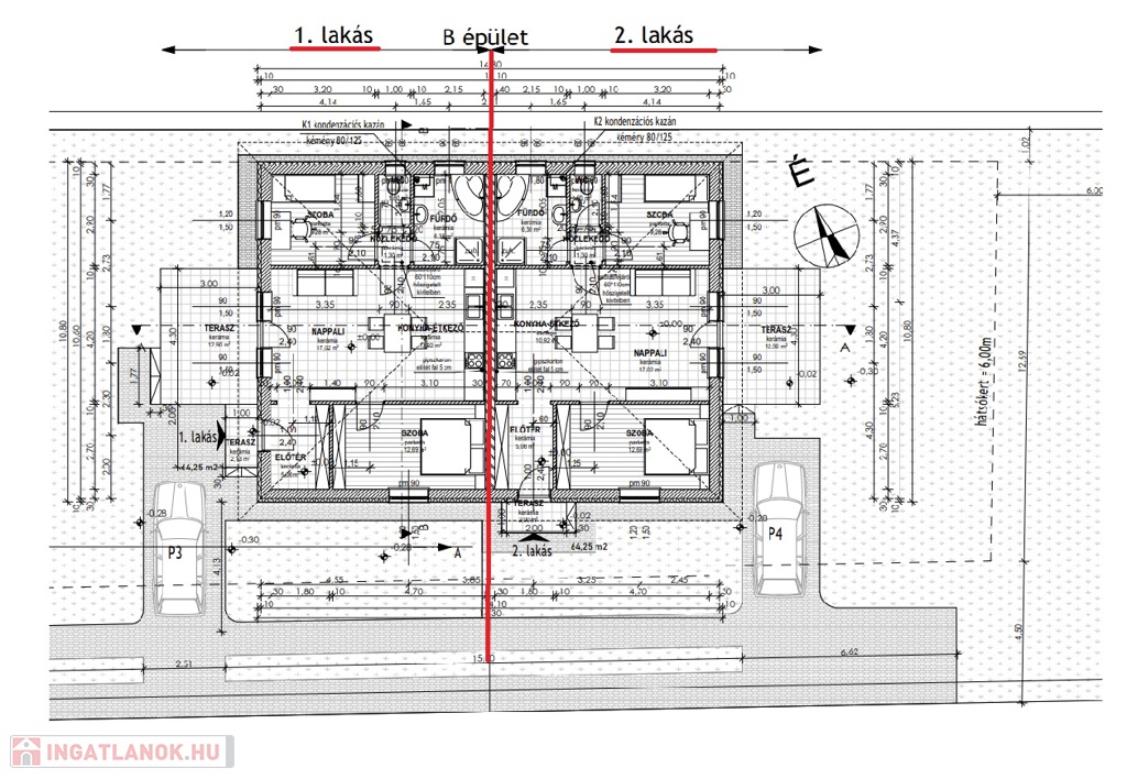 Mind két lakás nettó 64.25 nm + 12.90 nm terasz