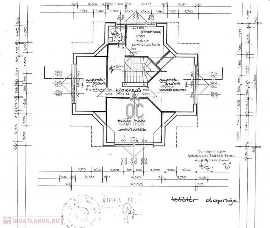 -A szobák laminált parkettával, a többi helyiség járólappal, a földszinti nappali parkettával burkoltak.