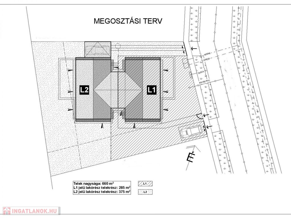 Az ikerházak egy 660 m2-es telken épültek fel. Ebből a 2. lakáshoz kb. 382 m2 saját terület tartozik.