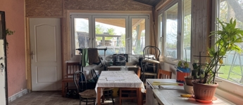 Beépített terasz(előtér), konyha, étkező, fürdőszoba, 2 szoba lett kialakítva.