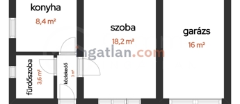 Hátsó lakrész egy 34 nm-es, különálló, szintén felújítandó épületrész, szoba – konyha - fürdőszoba helyiségekkel. Ideális lehet külön generációnak, otthoni irodának vagy műhelynek a felújítás után.