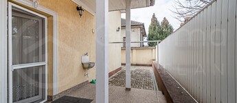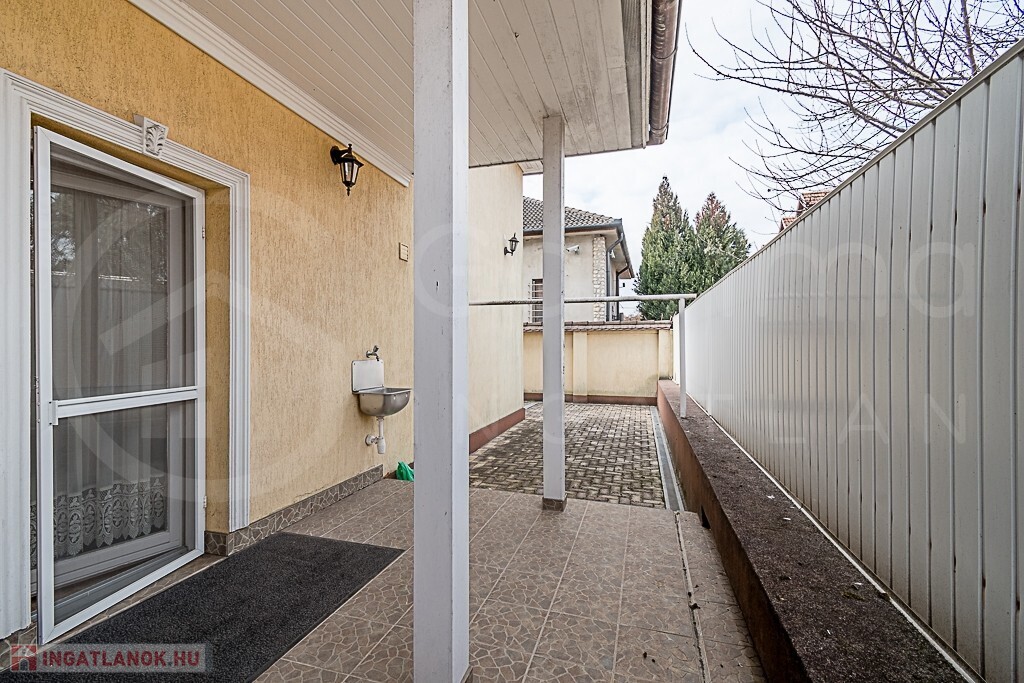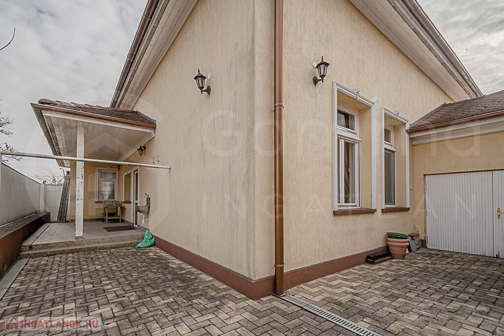 Az udvarra táv vezérelt kapun keresztül lehet bejutni. A garázs egy autó számára lett kialakítva.
