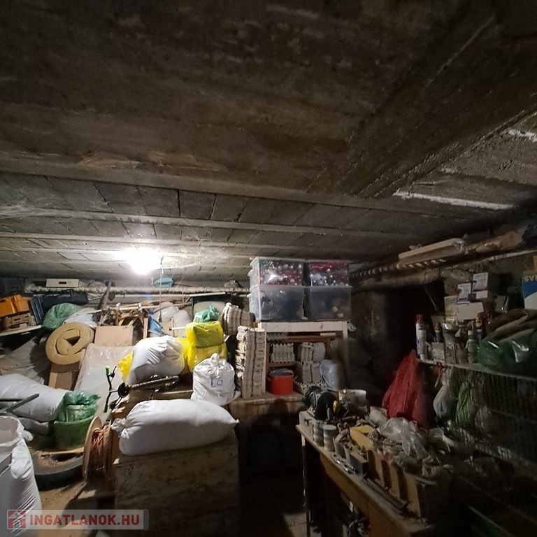 Az egész ház alatt, 85 m2-es pince van, mely több részre le van választva, itt található garázs, kazánház és tárolók.