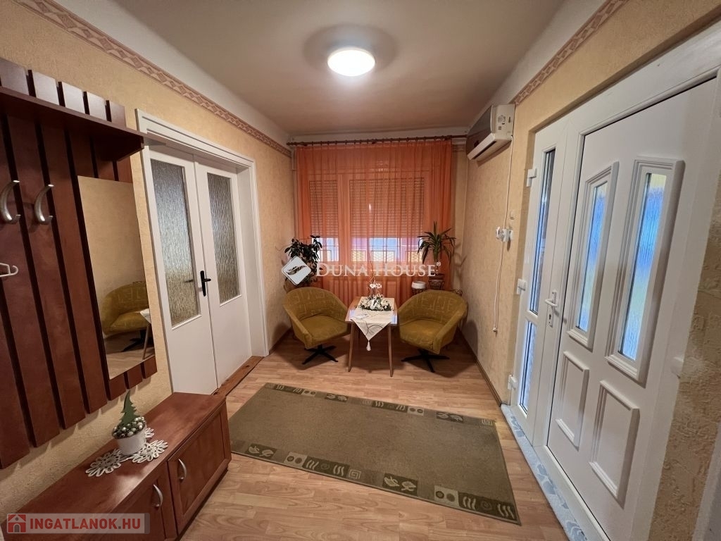 A házba belépve egy tágas előszoba fogad minket, amelyben klíma is helyet kapott, biztosítva a kellemes hőmérsékletet a nyári hónapokban. A három szoba mellett egy konyha+étkező, egy fürdőszoba+WC, valamint egy nagy, fedett terasz is tartozik az ingatlanhoz.