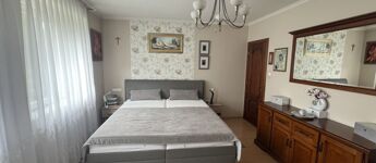 Mosonmagyaróvár központi részén, a Báger-tó szomszédságában, 1165 m2 -es, füvesített, parkosított telken elhelyezkedő, 1993 -ban épült, 3 szintes, nettó 303 bruttó 450 m2-es, 5 szoba + 2 nappalis, műanyagablakos, redőnyös és szúnyoghálós, szigetelt, hőszivattyús fűtési rendszerrel, kandallóval és napelemmel egyaránt rendelkező, alápincézett, 2000 - es évek elején felújított, és átépített, kiváló alaprajzi elrendezésű családi ház 27 m2-es dupla garázzsal, 150 m2-es kiépített pinceszinttel, 40 m2-es terasszal eladó.