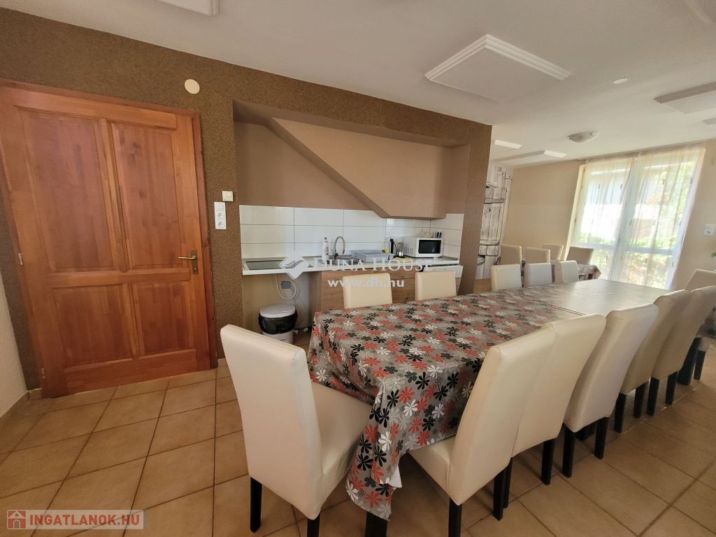 Das Gebäude wurde im Jahre 2011 gebaut, es besteht aus zwei gleiche Gebäude. Im einzelnen Gebäude sind 3 appartments mit eigenem Badezimmer, und 1-1 Gemeinschaftsraum: eine funktioniert als Wellnes, die andrere ist Küche und Esszimmer. Im Hof befindet sich ein Spielplatz. Über die Heizung besorgen Klimaanlagen und Elektische Infrageräten. Für warmes Wasser besorgt in jeden Haus elektrischen Boiler. Der Grundstück ist 1090 m2, die zwei Gebäden insgesamt 213 m2. Im Garten rundet ein überdachter 6x3m großer Swimmingpool die Entspannung ab!