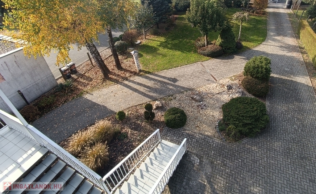 - bekerített rendezett, és parkosított udvar, utcafronton a kerítés épített, kő-vas elemből készült, a bejáróban elektromos kapu kiépítése megtörtént