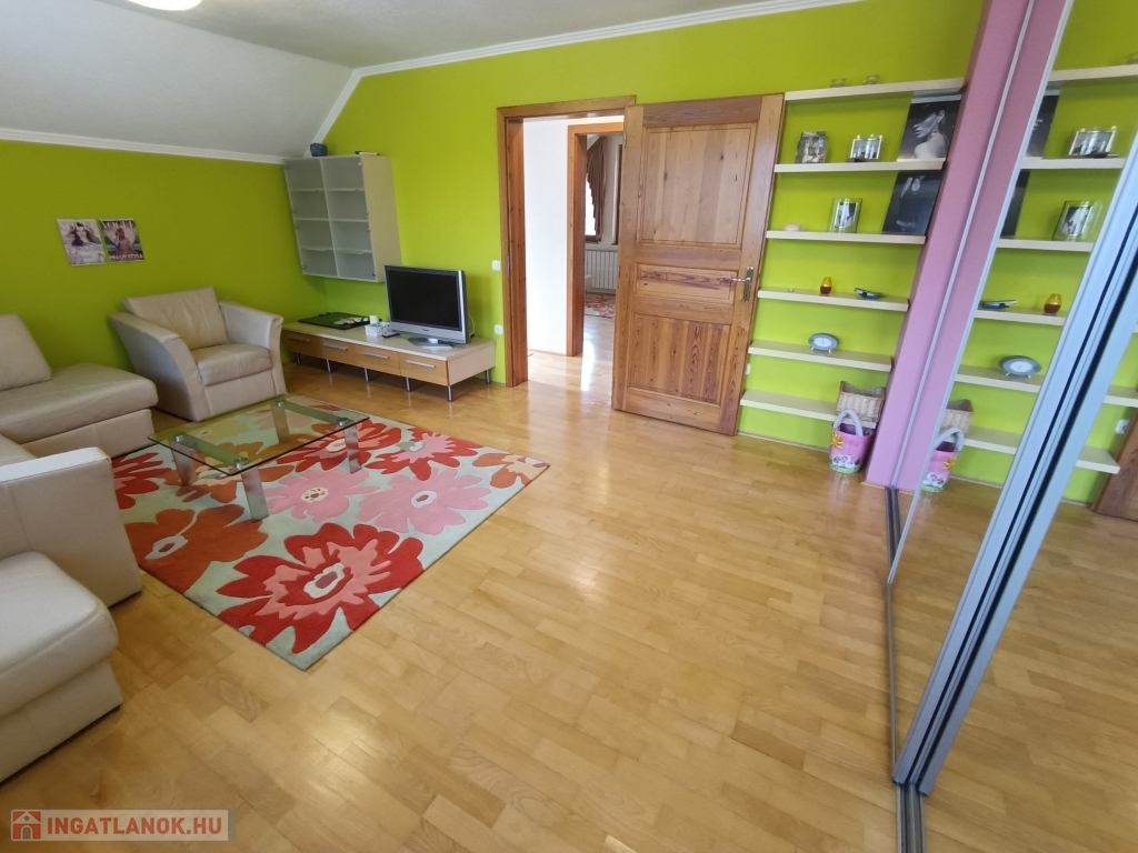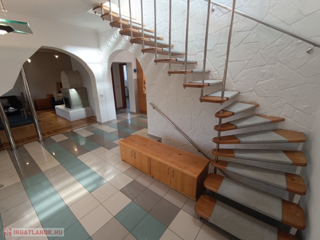 Az átlagosnál magasabb igényszintű és belső műszaki állapotú alagsor + földszint + tetőtér elrendezésű klimatizált, három szoba plusz nappalis téglából épült lakóház 1175 nm-es telken helyezkedik el.
