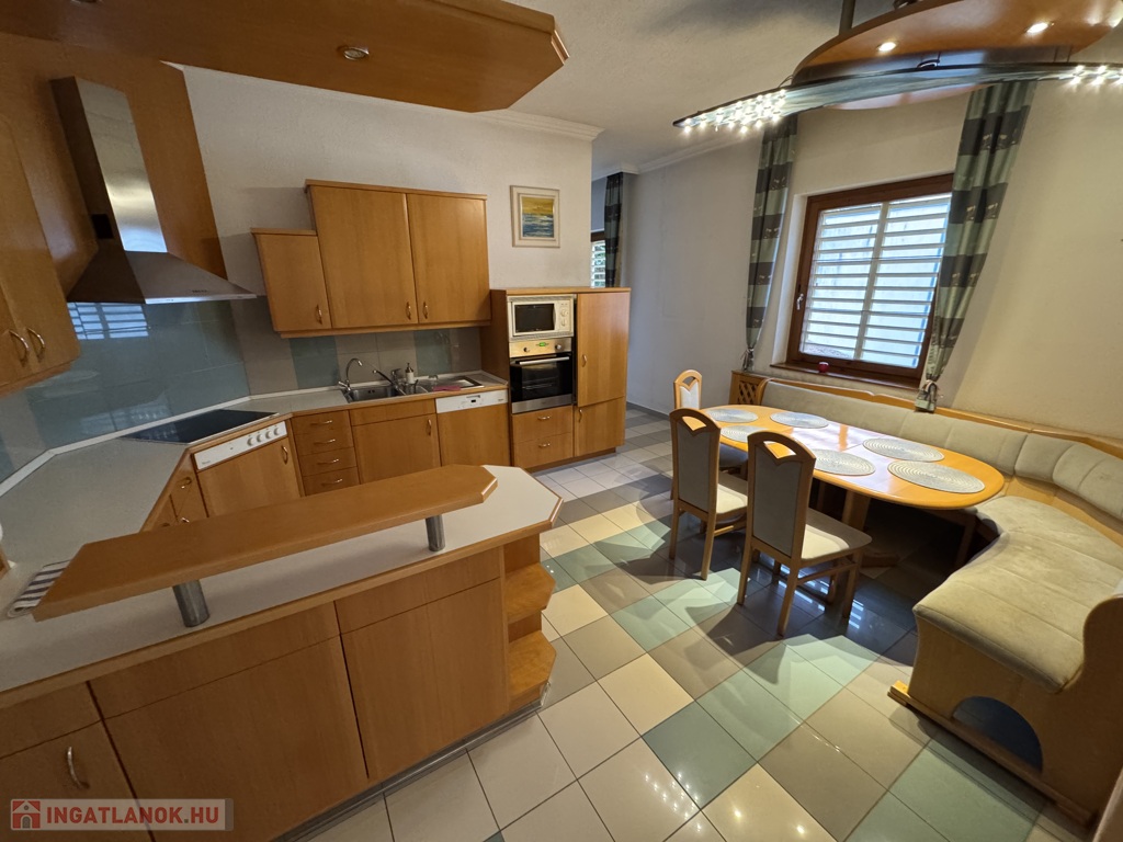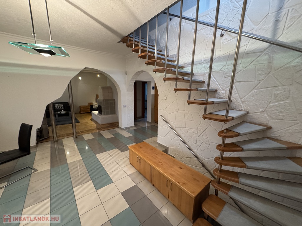 Nagykanizsán a Miklósfai városrészben, zöldövezeti környezetben eladó egy többszintes, 245 m2-es, tágas, nagy terekkel rendelkező, igényes kialakítású, folyamatosan karbantartott családi ház, hozzá tartozó parkosított, gondozott 1175 m2-es telekkel. A telken található egy szintén karbantartott, jó állapotú 134 m2-es külön közművekkel ellátott épület, mely jelenleg az ingatlan nyilvántartásban műhelyként nyilvántartott, több helyiségből áll (műhely, garázs, zuhanyzó, wc, 2 db tároló). Az épületrész külön fűtési rendszerrel működik, jelenlegi formájában alkalmas vállalkozásra. Igény esetén különálló lakrész, vagy egy beltéri medence és vellnes rész kialakítására is alkalmas.