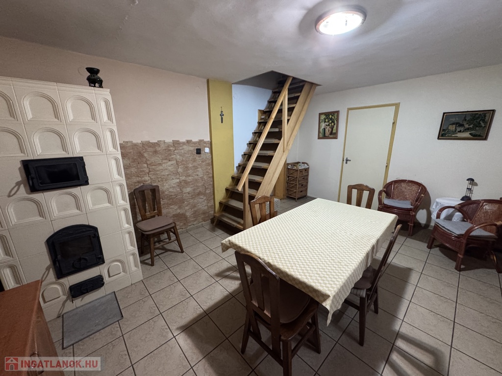 •kamra, valamint egy konyha + étkező, ahol egy hangulatos cserépkályha biztosítja az otthon melegét.