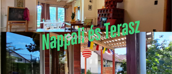 A földszinten egy tágas, világos nappali fogadja, ahol az egyedi cserépkályha melege igazi otthonos légkört teremt. A nappalihoz és a közösségi terekhez teraszok kapcsolódnak, melyek ideális helyszínei lehetnek a reggeli kávézásnak, a nyugodt pihenésnek vagy a baráti összejöveteleknek.