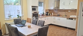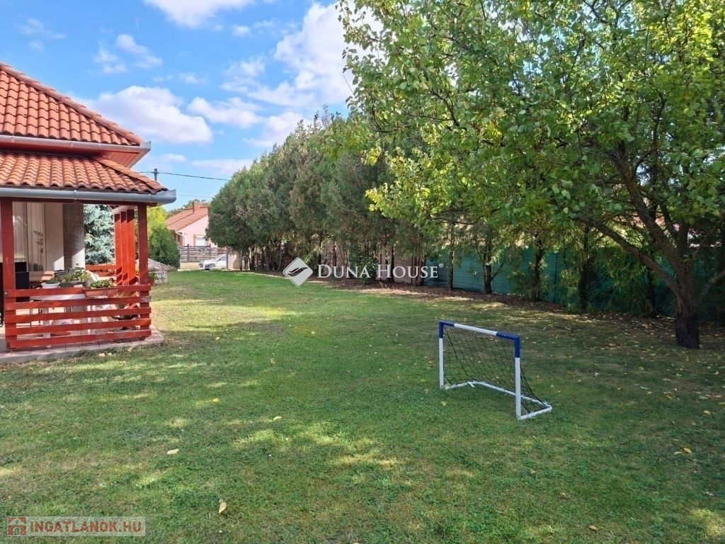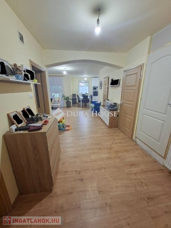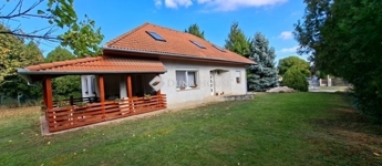 Eladó 2003-ban Porotherm 38 N+F téglából épült kétszintes családiház 25 nm-es fűtött garázzsal. A ház összesen 160 nm nettó. A földszint 85 nm és a tetőtér kb. 100/75 nm.Tetőtér beépítése 1,5 éve kezdődött folyamatban van. Készültségi szint kb 60 %-os. Fűtés, víz, villany előkészitve teljesen.Új Roto R7 műanyag ablakok a tetőtérben, Rehau kétrétegű műanyag ablakok a földszinten redőnnyel és szúnyoghálóval mindkét szinten. A földszint 2,5 éve teljesen fel lett újítva, kivéve a fürdőszobát.Külön két fürdő/WC és egy külön WC a földszinten. Grohe csaptelepekkel.Panasonic 5.3 Kw-os klíma a földszinten.Amerikai konyhás nappali minőségi Bosch beépített gépekkel.Földszinten egy 15 nm-es szoba, a tetőtérben három nagyobb.Mosókonyha/háztartási helyiség és kamraWiessmann 24 Kw-os Gázkazán Radiátoros fűtéssel, a két szint külön termosztáttal ellátott, egyedileg állítható.A melegvizet bojler éjszakai árammal vagy a gázkazán is biztosítja.25 nm-es fedett terasz, közvetlen kapcsolat a kerttelUtp hálózati csatlakozás kiépítve az egész házban.3 X 25 A ipari áram.3 + 8 m3- ciszternába bevezetve az esővíz csatorna.Parkosított, gondozott udvar örökzöldekkel.