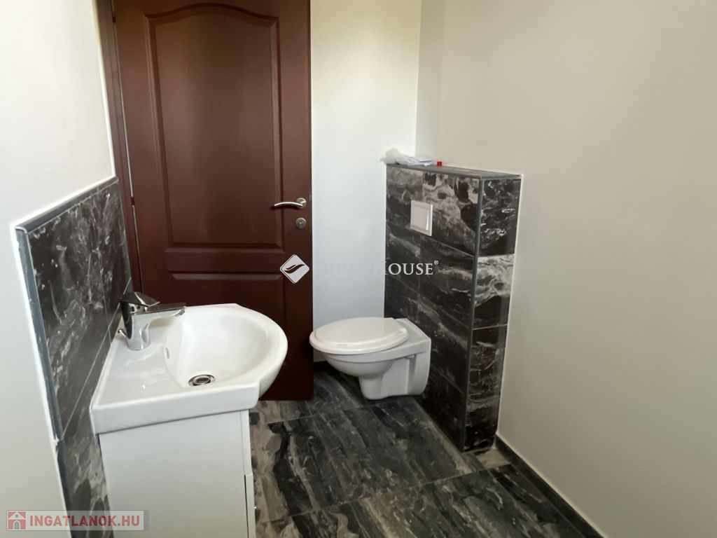 Szeretne új építésű ingatlanban élni, de nincs kedve, ideje az építkezés hosszadalmas, bonyolult folyamatát kivárni ? Itt a kitűnő lehetőség : ÚJ ÉPÍTÉSŰ, 3 szobás CSALÁDI HÁZ NAGYPÁLI településen, 5 km-re Zalaegerszeg várostól ! Az ingatlan kitűnő lokációban helyezkedik el :Nagypáli főutcája mellett, a falu központjában, alig pár km-re a zalai megyeszékhelytől. Szemben vele az utca másik oldalán játszótér található, így kisgyerekes család számára is kitűnő választás. Az utca is új, csak 2-3 házhoz, telekhez nyílik onnan a bejárat. Az ingatlan 1079 nm-es területen helyezkedik el, ahol pár fa dekorálja az udvart. Mivel a falu magasabb pontján áll, nyugat felé panorámás kilátás nyílik belőle. Napfényes, hiszen a konyha - nappali része kelet felől, illetve délről kapja egész nap a fényt, egy szoba keleti, a másik kettő nyugati fekvésű. Az udvar még nincs körbekerítve, ez a feladat, illetve az ingatlan külső színezése az, ami a leendő vevőre vár, hogy ők maguk választhassák ki maguknak a megfelelő színt, stílust. A három szobán kívül hatalmas étkező-nappali-konyha tér uralja a házat, ami klímás fűtést is kapott, illetve innen nyílik egy nagy fedett terasz is, keleti - déli tájolással. Előszoba, háztartási helyiség, kamra segíti a tárolást, pakolást. A fürdőszoba zuhanyzóval, káddal épült, illetve 2 külön álló wc található az ingatlanban. Gyakorlatilag azonnal költözhető, a befejező munkálatokat az új vevő már lakhatás mellett is tudja végezni. Nagypáli 5 km-re található Zalaegerszegtől, az utóbbi években nagyon kedvelt, gyorsan fejlődő településként vált ismertté és kedveltté a környékbeliek számára. Új utcák, újépítésű ingatlanok, szépen kialakított falukép várja az ideköltözőket. A környéken rengeteg kirándulási, pihenési , sportolási lehetőség nyújt kikapcsolódásra módot. Zalaegerszeg egyre bővülő, fejlődő városként kitűnő munkalehetőségeket kínál az aktív korúak számára, a gyerekeket pedig speciális óvodák, iskolák várják tanulási lehetőségekkel. A Balaton fél óra alatt elérhető a környékről, Ausztria, Szlovénia, Horvátország alig egy órás autóútra van innen. Ha érdekli az ingatlan, hívjon fel, keressen meg, nézzük meg együtt, és ha beleszeret, azonnali szerződési lehetőséggel tudunk segíteni. Vevőinknek szolgáltatásaink díjmentesek,támogatásokban, hitelügyintézésben is állunk vevőink rendelkezésére.