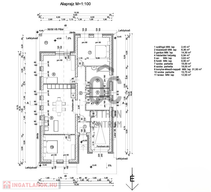 - A házhoz tartozik egy 14,3 m²-es garázs, amely Hörmann típusú garázskaput kapott.