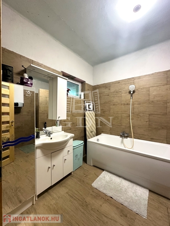 A ház lakószintjén, mely részlegesen újításra is került 3 szoba, konyha, fürdőszoba, mellékhelyiség, kamra, és egy méretes közlekedő kapott teret.