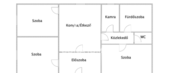 - Az egy szintes ingatlanba található: előszoba, 3 szoba,étkező,/konyha, spájz, fürdőszoba, WC