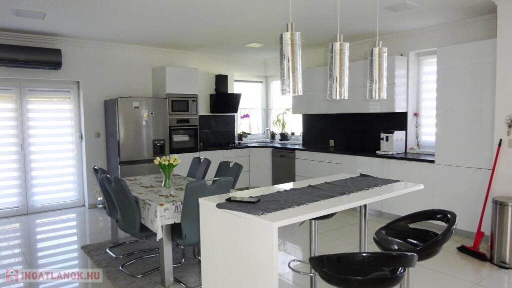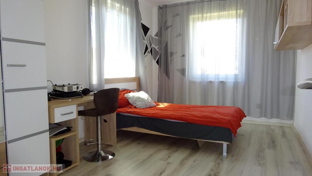 Nyíregyháza Tünde utca közelében eladóvá vált egy 2021-ben épült, 142 nm-es, négy szoba+étkezőkonyhás szintes családi ház két terasszal. További jellemzők: - tégla falazat, 20 cm homlokzati szigeteléssel, - Bramac tetőcserép, - telek területe: 572 nm, - 3 rétegű műanyag nyílászárók, alumínium redőnnyel felszerelve, - kondenzációs kazán+ padlófűtés, - beépített, gépesített konyhabútor, - duplakomfort, - 2 db klíma - alsó szinten: konyha-étkező-nappali, egy hálószoba, fürdőszoba, külön Wc - felső szinten: három hálószoba, társalgó (közlekedő), fürdőszoba+Wc. Amennyiben felkeltette érdeklődést, várom hívását.Az ingatlan azonosítója: 90843Érdeklődni: +36303161404 Az ingatlan azonosítója: 90843 Érdeklődni: +36303161404