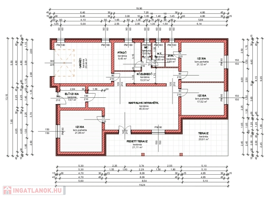 - garázs: 30 nm, szekcionált garázskapuval felszerelt