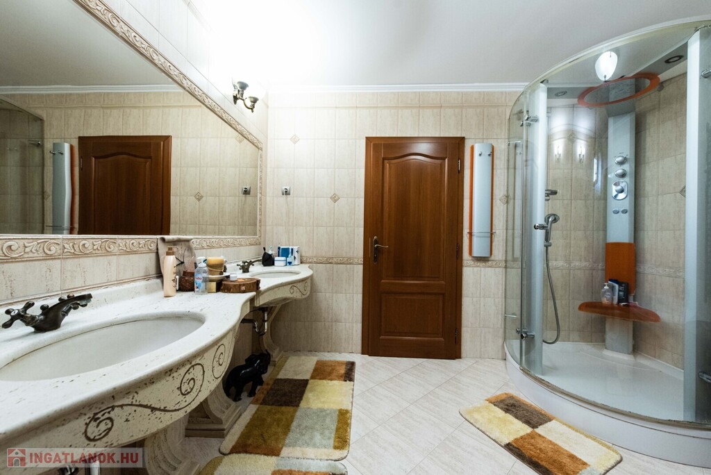 Nyíregyházán, Oroson megvételre kínálunk egy 620 nm-es, 2009-ben Y-Tong tégából épült N + 4 szobás, Amerikai stílusú konyha, étkezővel rendelkező családi házat. Az ingatlan 2 szintes, alsó szintjén nappali, konyha, étkező, 1 hálószoba, került elhelyezésre, felső szintjén 3 hálószoba, fürdőszoba, mellékhelyiséggel valamint egy gardrobe szoba található. Az ingatlanhoz tartozik egy 45 nm-es iroda helyiség, 40 nm-es konditerem, valamint egy zárt medence amelyet napkollektor üzemel. A továbbiakban 2 állásos garázs, prémium minőségű nyílászárók, 11.2 KW -os napelem rendszer, 2 kondenzációs kazán emeli ennek az ingatlannak az értékét. Az ingatlanhoz tartozó össz telek terület 3500 nm-es, melynek kb 1000 nm-e gyönyörűen parkosított.