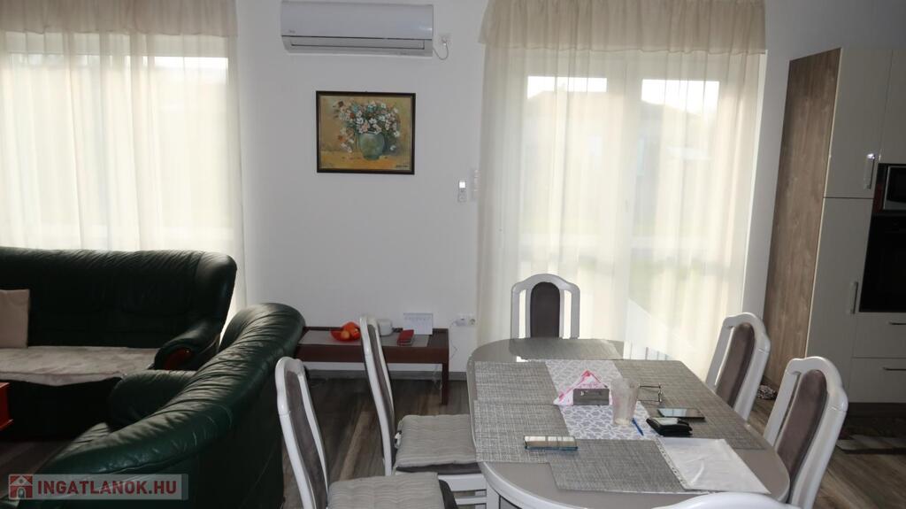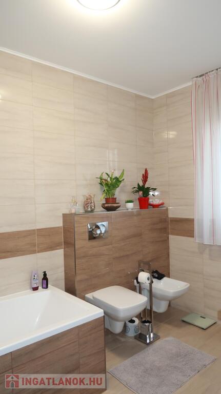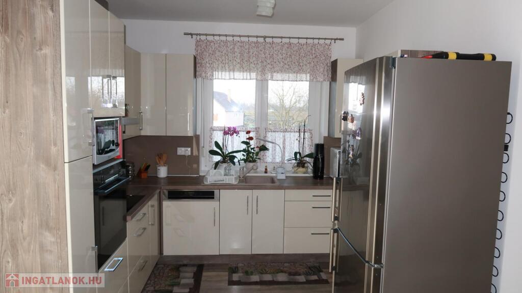 Nyíregyháza-Oros csendes környékén, 2019-ben épült, 143 m2-es 3 szoba, nappalis, nagy teraszos önálló családi ház , plusz 144 m2-es gazdasági épület., valamint 32 m2-es garázzsal, kiváló állapotban, 8500 nm-es telekkel eladó. Az ingatlanba prémium minőségű anyagok kerültek beépítésre. A rendkívül jó elosztású ház tágas, világos, déli fekvésű nappalival, egyedi, kiváló minőségű beépített konyhával, spájzzal, két fürdőszobával. mosókonyhával és gardrób szobával rendelkezik. Az otthon melegét egy gyönyörű cserépkályhán kívül infra padlófűtés adja. Az ingatlan teljes elektromos fogyasztását 11, 6 KW-os napelem biztosítja, mely igény esetén 20 %-al bővíthető, ezért csupán a víz és csatornadíj jelenik meg havi rezsi költségben. A főépület 20 cm-es szigeteléssel ellátott, műanyag nyílászárók kerültek beépítésre, az energetikai besorolása CC. Gazdasági épület bruttó 144 m2 alapterületű, mely áll egy 88 m2 egylégterű helyiségből, valamint konyha, mosdó és WC helyiségekből áll. Fűtése infra panel és klíma. A gazdasági épület bármilyen célra hasznosítható, ugyanolyan anyagokból épült, mint a családi ház, így akár lakás célra (kétgenerációs lakhatás) is átalakítható. A fűtése infra panel, a szigetelés 15 cm. Az udvar parkosított, öntözőrendszerrel ellátott, a bejárat automata kapuval van felszerelve. Amennyiben szeretne csendes helyen, jó levegőn lakni és felkeltettem az érdeklődését, bátran hívjon!Az ingatlan azonosítója: 90945Érdeklődni: +36703610015 Az ingatlan azonosítója: 90945 Érdeklődni: +36703610015