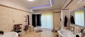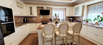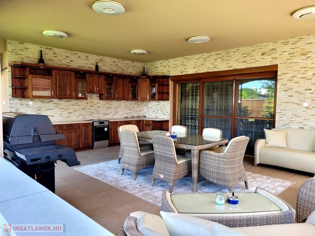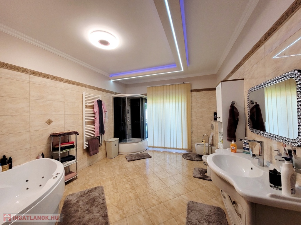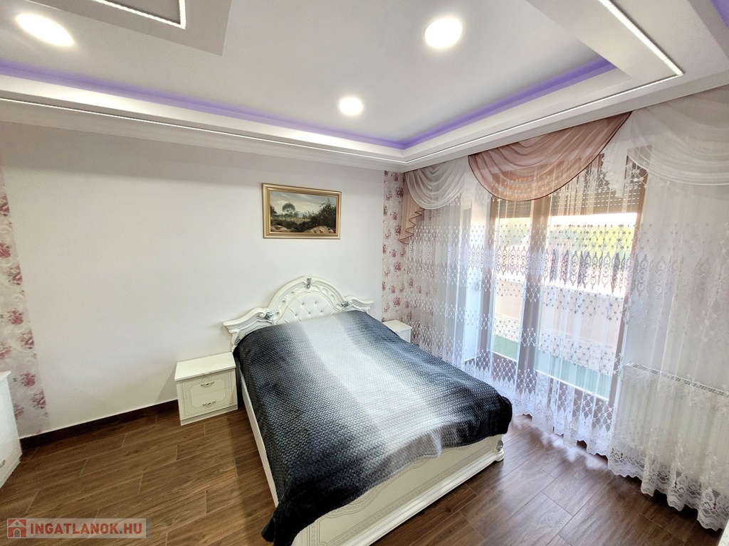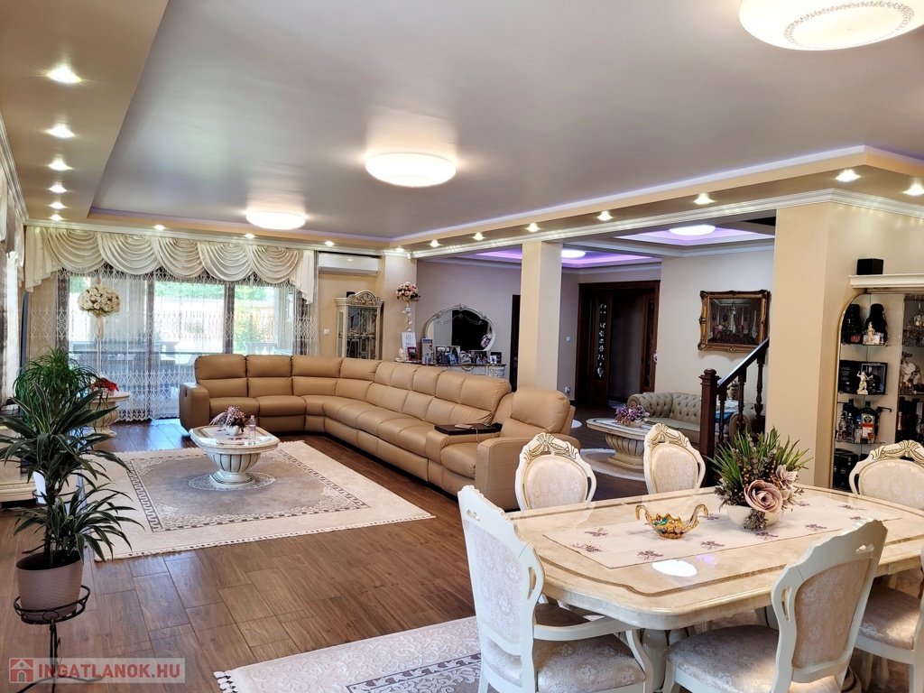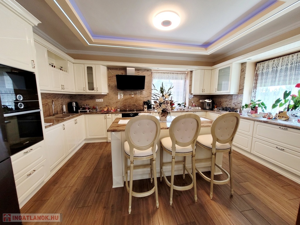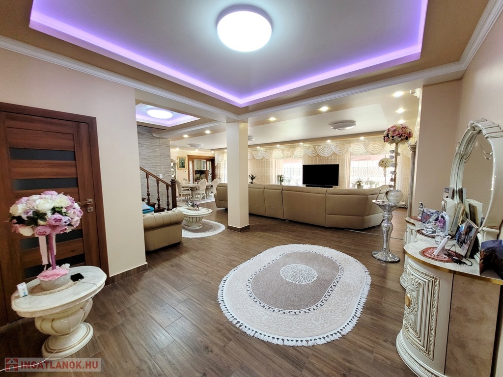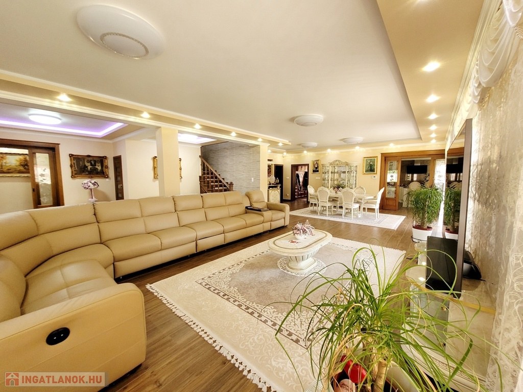 Nyíregyháza Örökösföld új lakónegyedében megvételre kínálunk egy impozáns minden igényt kielégítő 350 nm-es 5 szoba nappalival rendelkező családi házat. Az ingatlan magas minőségi burkolatokkal, beltéri ajtókkal, Sofa nyílászárókkal, melyek elektromos redőnnyel szereltek, fűtéséről egyedi gáz és padlófűtés gondoskodik. Az ingatlan alsó szintjén található : 90 nm-es Nappali, tágas konyha, 1 hálószoba 1 gardróbbal, 2 fürdőszobával, 80 nm-es 2 állásos fűtött garázs, 2 különálló tárolóhelyiséggel, valamint a gépházzal. A világos nappaliból egy tágas 45 nm-es nyugati fekvésű teraszra érkezünk, ahol egy különálló konyha is kialakításra került a kinti szabadtéri programokhoz. A felső szinten 4 hálószoba, 2 fürdőszoba, 2 gardrób, valamint egy mosóhelyiség került kialakításra. A hálószobák egy 140 nm-es egylégterű teraszra nyílnak, , ahonnan panoráma kilátásban van részünk. Az ingatlan további jellemzői: a szobák hűtő -fűtő klímával, kamera rendszerrel felszereltek, 1300 nm-es automata öntözőrendszerrel gyönyörű parkosított kert és tárolók. A mindennapokat több szinten kielégítő családi otthon akár álmai otthonává válhat. Az ingatlan azonosítója: 94120Érdeklődni: +36709442086 Az ingatlan azonosítója: 94120 Érdeklődni: +36709442086