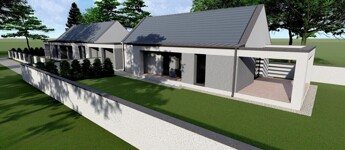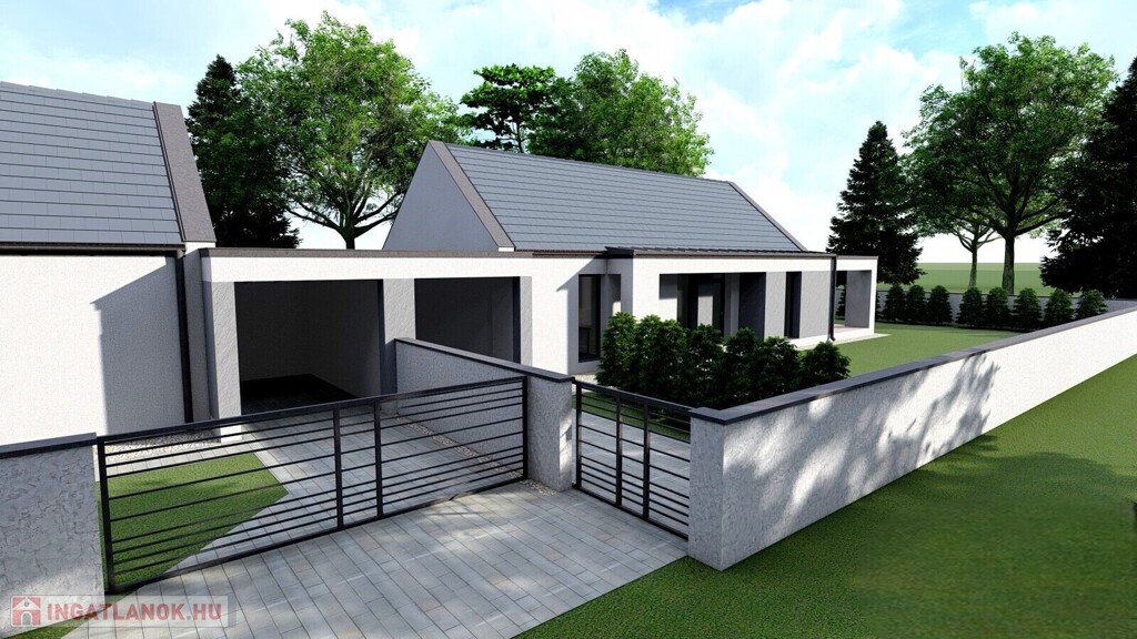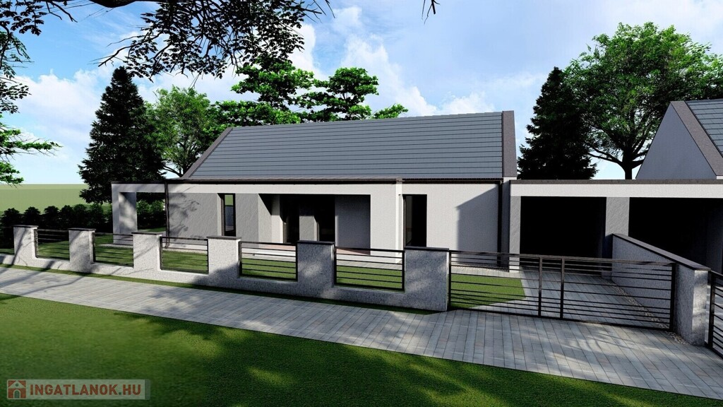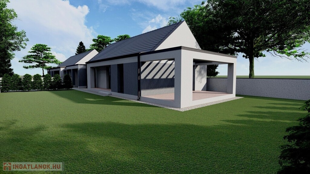 Nyíregyháza Oroson 2026 nyári átadással eladásra kínálunk garázsok mentén összeépített családi ikerházat.