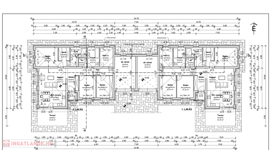 Nyíregyháza Metró áruház vonzásában, ÚJ ÉPÍTÉSŰ, 124 nm-es, 3 szoba + tágas nappali étkező konyhával, 16 nm-es teraszkapcsolattal, 1 fürdő zuhanyzó és fürdőkáddal, 2 wc-vel, mosókonyha, gardróbszoba és kazánház, választható járólap és laminált parketta burkolattal, egyedi gáz padló fűtéssel kondenzációs kazánnal, 3 db inverteres hűtő-fűtő klímával, 3 réteg üvegezésű antracit műanyag nyílászárókkal, 15 cm homlokzati, 30 cm födém 10 cm lépésálló szigeteléssel, 19,5 nm-es Hörmann automata kapuval ellátott garázzsal, részben térburkolva és épített kerítéssel ikerház, 836 nm-es telken eladó. Kulcsátadás 2026 tavasza.Az ingatlan azonosítója: 97661Érdeklődni: +36702560693 Az ingatlan azonosítója: 97661 Érdeklődni: +36702560693