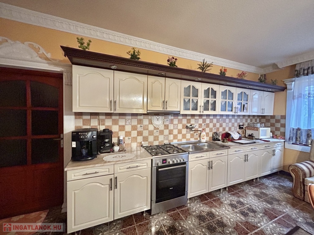 Nyíregyháza-Oroson eladó egy 185 nm-es, 6 szoba, nappalis, műanyag nyílászárókkal szerelt, dupla komfortos, egyed gáz, padló és vegyes fűtésű, járólap és laminált parketta burkolattal rendelkező önálló családi ház, alatta 80 nm-es pincével. Az udvaron garázs, két állásos fedett kocsibeálló, parkosított és aszfaltozott területek, valamint automata kapu áll a rendelkezésre. Földszinten nappali, konyha, kamra, fürdőszoba,wc, emeleten 3 szoba, fürdőszoba wc-vel került kialakításra. Amennyiben szeretné megtekinteni hívjon bizalommal. Az ingatlan azonosítója: 98133Érdeklődni: +36703610015 Az ingatlan azonosítója: 98133 Érdeklődni: +36703610015