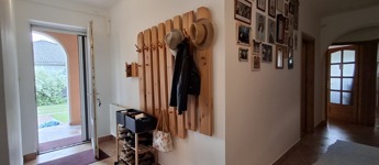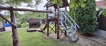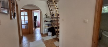Az alsó szinten: amerikai konyha + nappali, 3 hálószoba, spájz, konyha, fürdő, wc. A nappaliban egy szuper cserépkályha, mely igazán megadja a ház egész hangulatát.