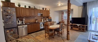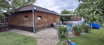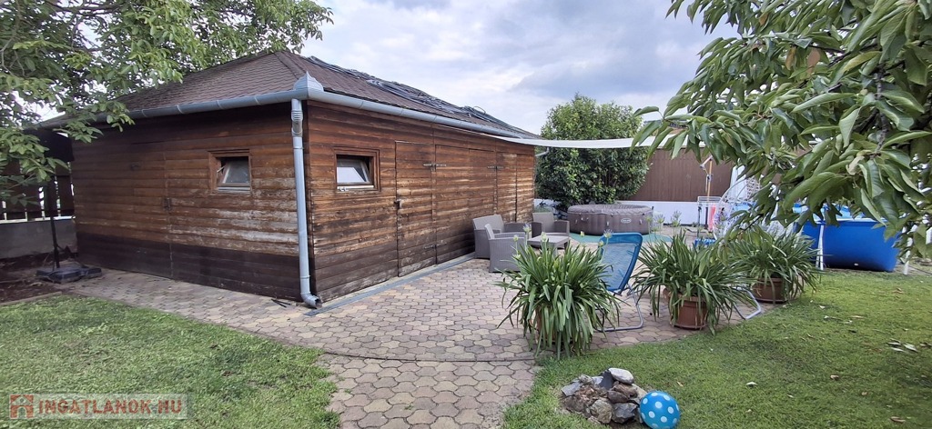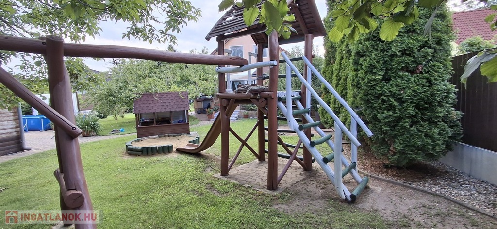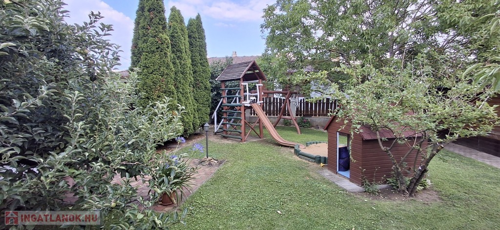 50 nm-es terasz, mely részben fedett, 40 nm-es pince, garázs. A parkosított udvar gyönyörű látványt nyújt, saját játszótér a gyerekeknek.