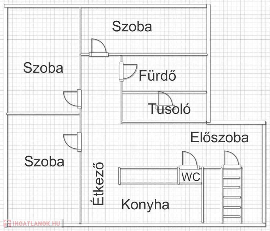 - 3 szoba + konyha-étkező