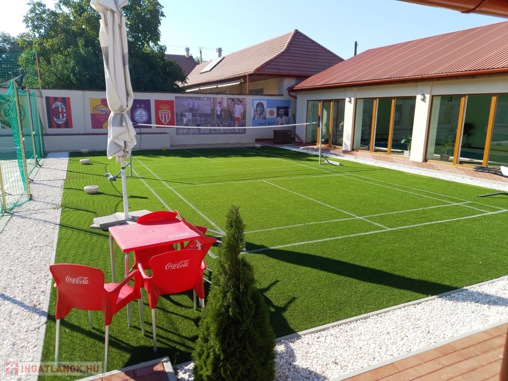 A ház modern és kényelmes életet biztosít, miközben a környezet is maximális pihenést kínál. A parkosított kert, a medence és a teniszpálya lehetőséget adnak a szabadidő aktív eltöltésére, míg az épület belső terében minden igényt kielégítő luxus várja leendő tulajdonosát.