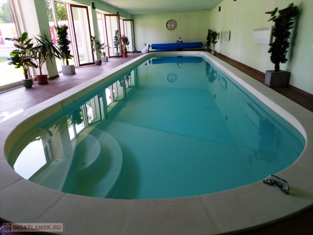 Fűtött medence: 16x3,4 m, teljes gépészettel és légtechnikával, jakuzzival