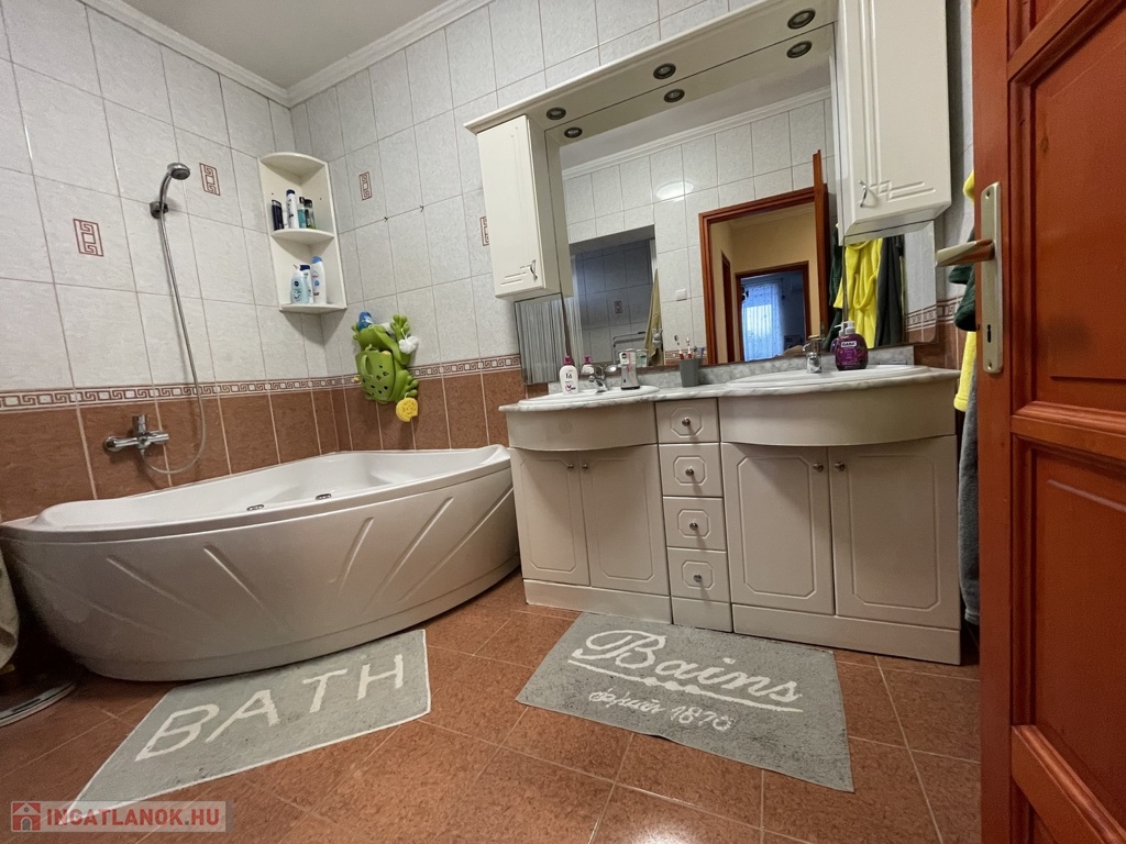 A ház műanyag nyílászárókkal, redőnnyel és szúnyoghálóval, továbbá 3 db klímával és riasztórendszerrel felszerelt. Fűtése gáz kondenzációs kazánnal, alternatív lehetőségként kandallóval megoldott. Az 1014 m²-es, gondozott udvar részben térkövezett, részben parkosított, díszfákkal beültetett, ahol külön filagória, külön fedett autóbeálló, játszótér és automata öntözőrendszer is helyet kapott. Az ingatlan elektromos kapuval zárt.