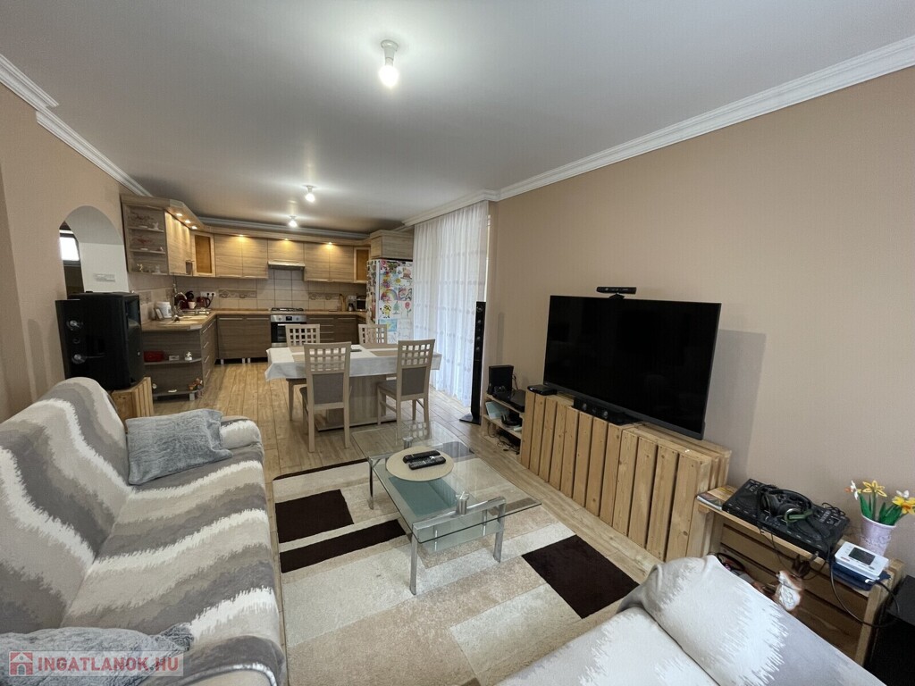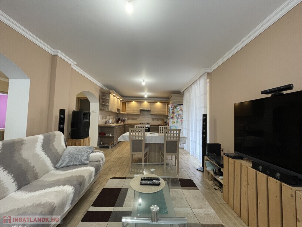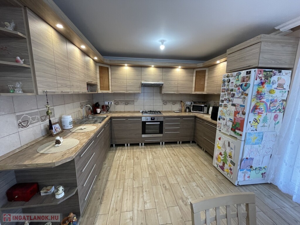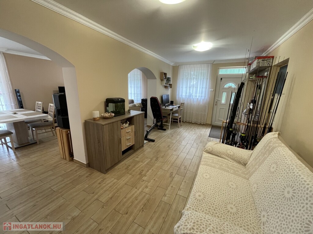 Nyírszőlős csendes, zöldövezeti részén ELADÓ egy 1999-ben épült, 89 m²-es, teljes körűen felújított, azonnal költözhető családi házat. Az ingatlan jelenlegi elosztása 2 külön nyíló, tágas szobát és egy világos, amerikai konyhás nappalit kínál, azonban kis ráfordítással könnyedén háromszobássá alakítható. A fűtésről korszerű gázüzemű kondenzációs kazán gondoskodik, amely vegyes tüzelésű kazánnal is kiegészül, padlófűtéssel és radiátorokkal. A ház kiváló hőszigeteléssel rendelkezik (10 cm), műanyag nyílászárói redőnnyel és szúnyoghálóval szereltek, a nyári komfortot klíma biztosítja. A konyha egyedi tervezésű beépített bútorral és gépesítéssel kerül átadásra. Az udvarban kétállásos garázs elektromos kapuval, különálló kazánház és tároló is helyet kapott. A telek 3605 m², hátsó részén gondozott gyümölcsfákkal (három sor szilvafa), az utcafronti kapu szintén elektromos, távolról, Wi-Fi alkalmazással vezérelhető külső világítással felszerelve. Ez az ingatlan kivételes lehetőséget kínál akár vállalkozó szellemű ügyfelek részére. Ha hirdetés felkeltette érdeklődését hívjon bizalommal. Az ingatlan azonosítója: 99475Érdeklődni: +36209222558 Az ingatlan azonosítója: 99475 Érdeklődni: +36209222558