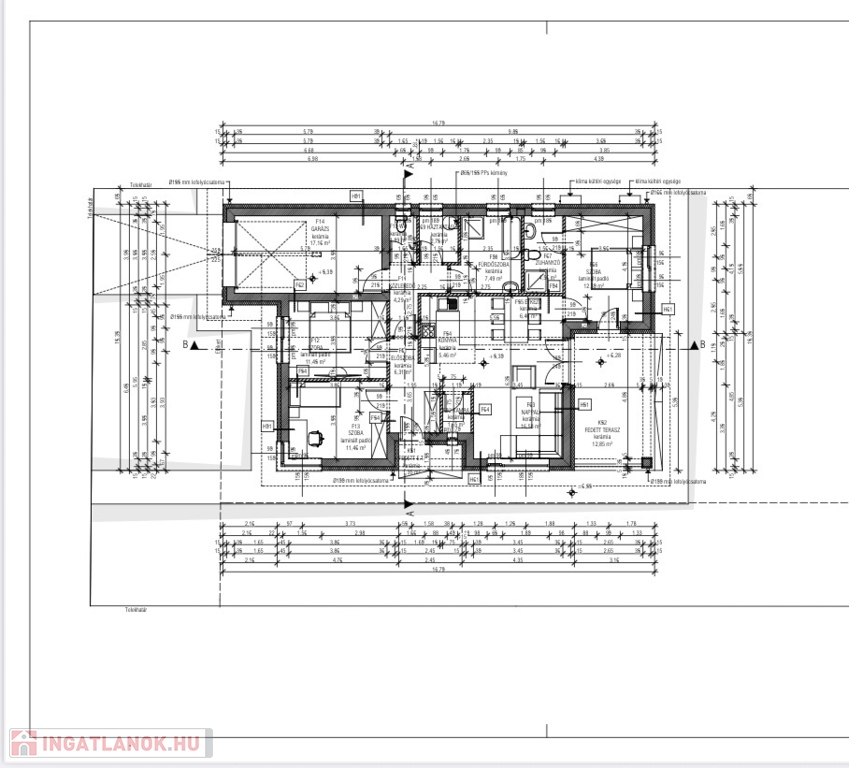 Az ingatlan tégla falazatú, nettó 92,43 nm lakótérrel, továbbá– 17,1 nm-es garázzsal,– 12,85 nm-es fedett terasszal rendelkezik,így az összes hasznos alapterület 124 nm.