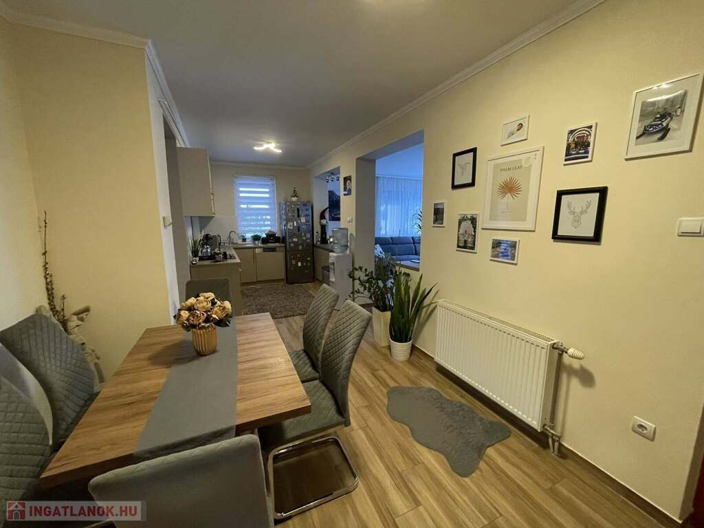 Nyíregyháza Felsőpázsiton az elkerülő szomszédságában csendes, rendezett környezetben kínálunk megvételre egy 2007-ben épült, tégla falazatú, szigetelt, 105 m²-es családi házat, amelyhez 25 m²-es fűtött, elektromos kapuval ellátott garázs tartozik.