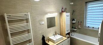 Fürdőszoba padlófűtéssel és radiátorral