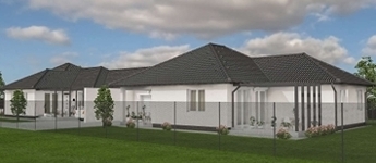 Az ikerház csak a garázsnál kapcsolódik a szomszéd épülethez, így a lakótér teljesen elkülönül, biztosítva a nyugodt és privát életteret.